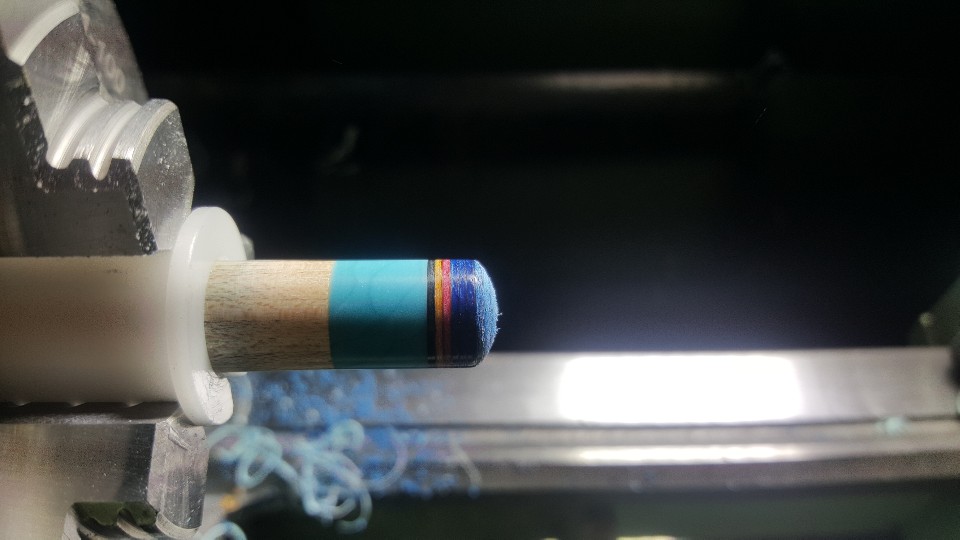 작업할 상대를 선반에 고정시킨 후 기존에 달려있던 선골과 팁을 말끔히 제거한 후 드래곤선골과 네비게이터팁을 순차적으로 순간접착제를 발라 단단히 고정시켜줍니다.